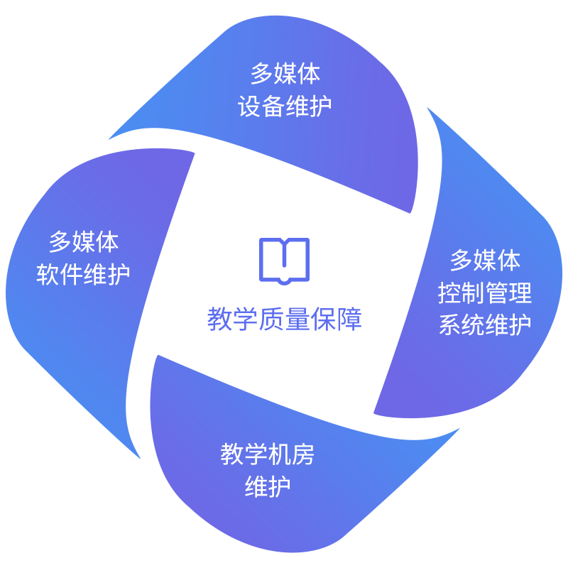 贯穿多媒体教室及教学机房全生命管理周期,做到建设与维护并重,管理与技术并重,全面保障学校多媒体教室及教学机房的教学质量。