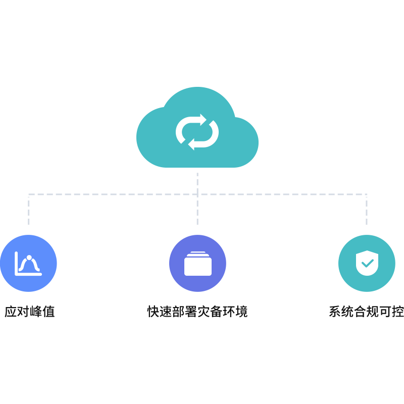 快速部署灾备环境(动态扩容的私有云平台,平台故障时,快速切换公有云灾备节点接替私有云环境工作;业务应用数据云灾备保障)